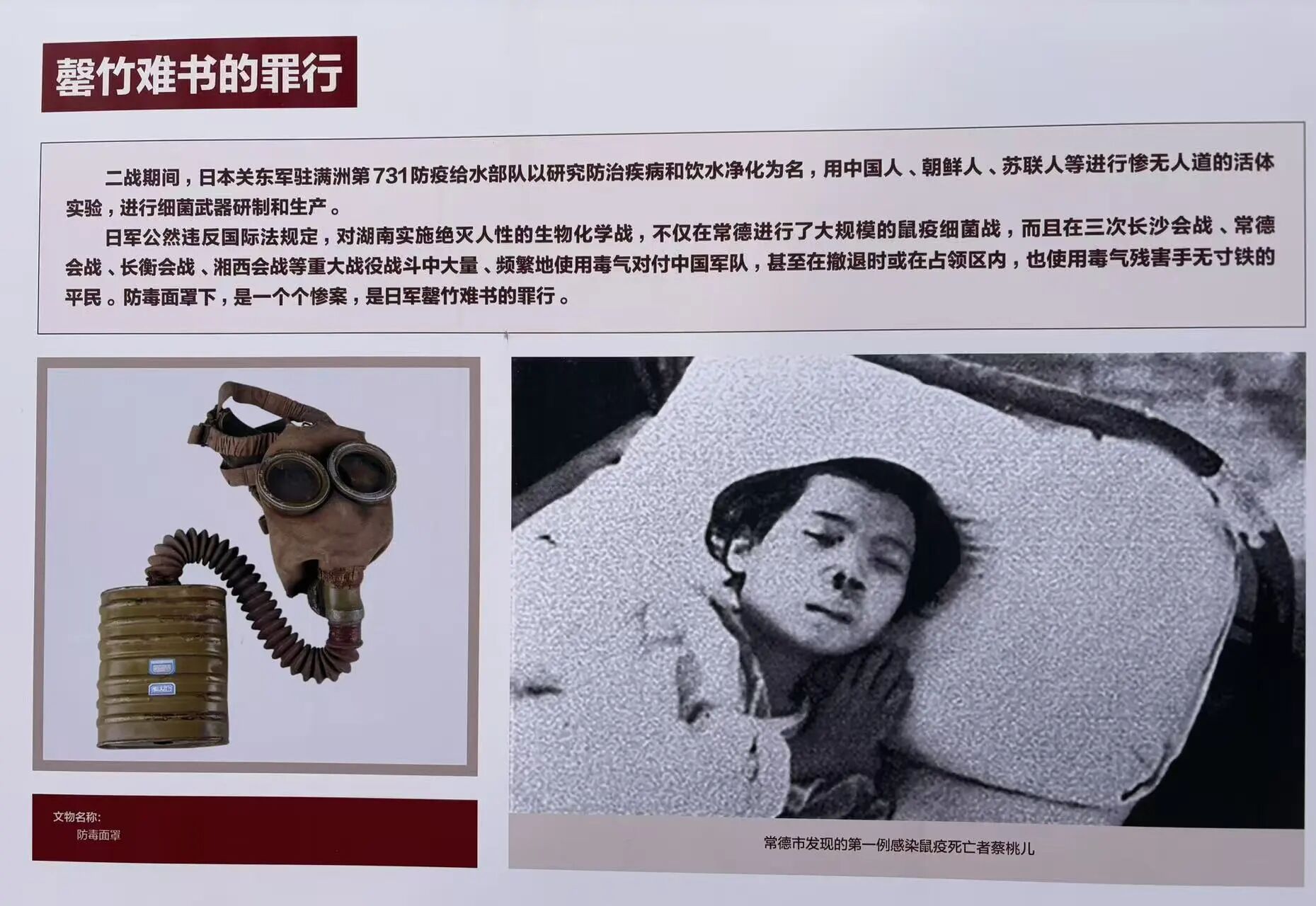 作为常德细菌战第一个被记录的鼠疫受害者,蔡桃儿的悲剧只是日军暴行的缩影。 1941 年常德细菌战的全过程:从 11 月 4 日日军空投带菌媒介物,到 11 月 14日蔡桃儿确诊死亡,再到后续 7643 名同胞相继遇难的惨痛历史。特别是日本摄影师权田茂拍摄的幸存者影像资料,成为揭露日军罪行的重要证据。