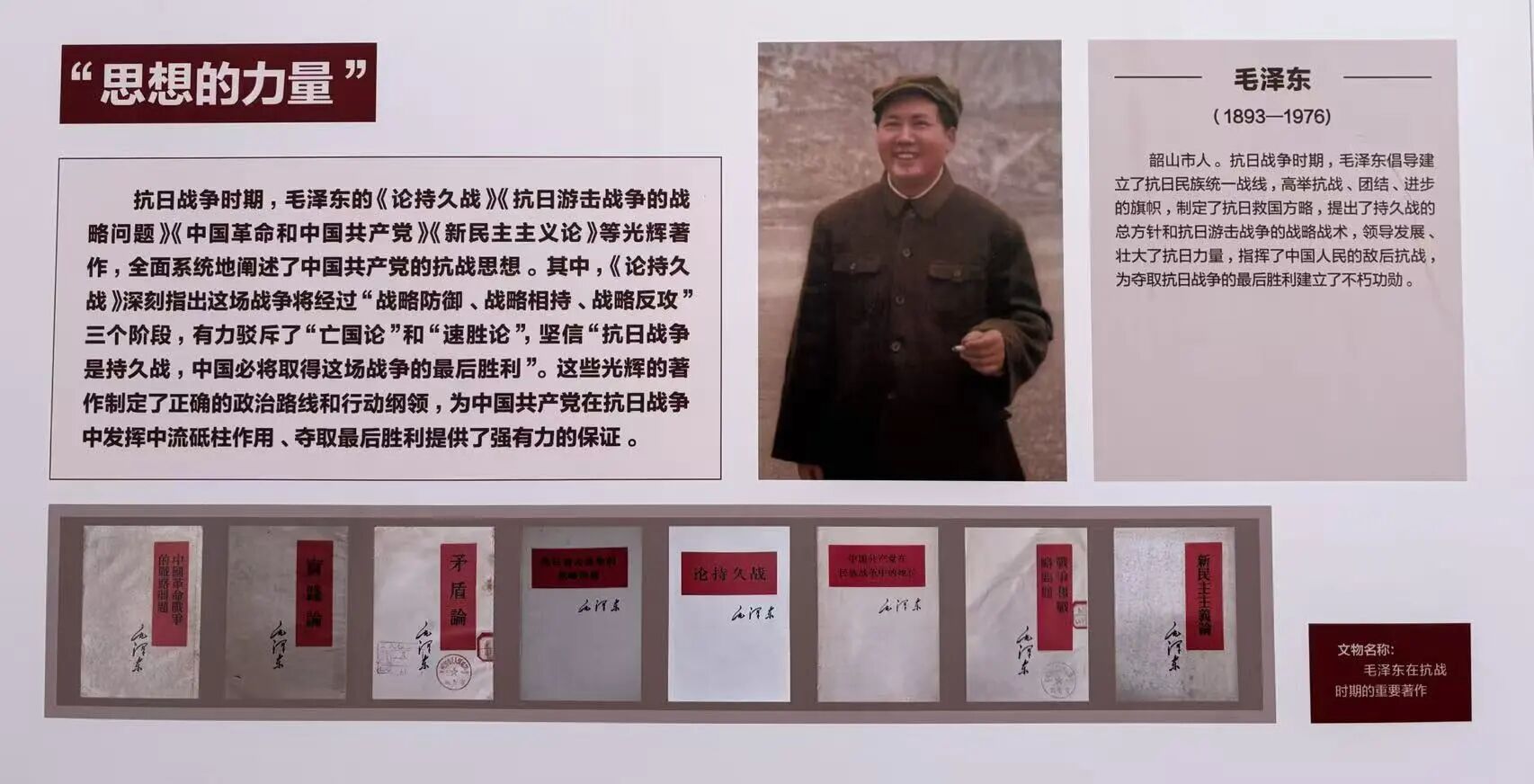 1945 年 8 月,芷江受降典礼上日本代表低垂的眉眼,定格成中华民族永远铭记的历史瞬间。展板呈现了毛泽东《论持久战》的战略思想如何指引全国抗战,以及刘少奇在华北抗日根据地开展的群众动员工作。通过领袖们的事迹,展现了中国共产党在全民族抗战中的中流砥柱作用。